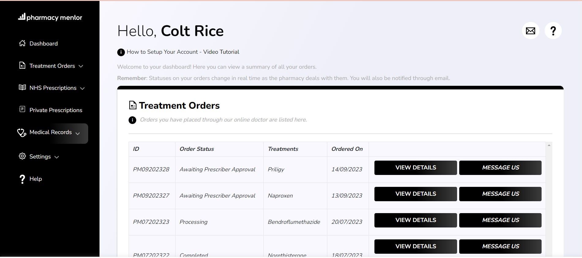 Your time is precious and we’re here to save that for you. Manage your medications (NHS or Private) on the go. You can send us messages through the system and you can pay for your prescriptions too.